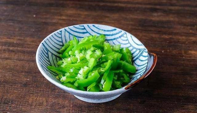 准备清洗干净的尖椒,香菜和大葱各切成丝,然后放在盆中,然后切点老咸菜疙瘩丝,用水多冲洗几遍,洗掉多余的盐分,然后攥干水分和,尖椒大葱香菜放一块,
