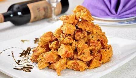 只用蛋清裹面粉加高度白酒醒发炸制。