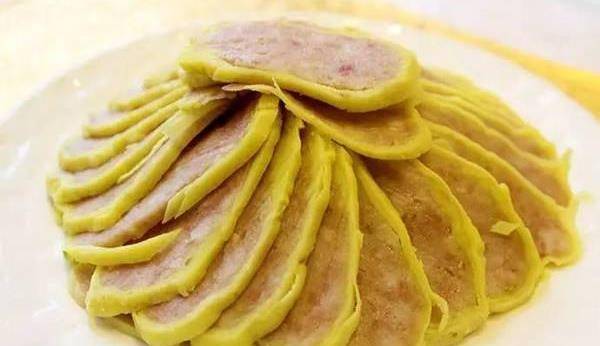 简单的说就是鸡蛋饼卷肉,进油锅炸制,切盘蘸着料汁,吃得相当爽,可荤可素,是餐桌上的绝对主角。