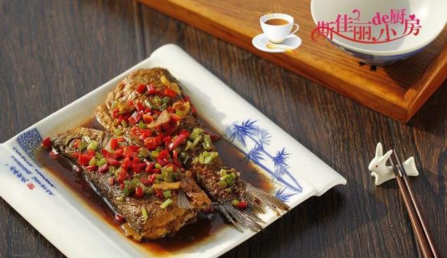 小贴士:1.腌制鱼时加入点姜片和高度白酒帮助去腥,入锅前要将鱼表面的水分吸干,避免油溅;2.煎鱼鱼皮不破的小窍门,下鱼时油温要稍微高点,放入鱼后不要急于翻动,要估计时间差不多时先晃动下锅,如鱼能跟着动,就基本上煎好了;3.煮鱼的时间跟鱼的大小有关,可调整,注意大火收汁时要翻个面,让鱼的双面都入味。