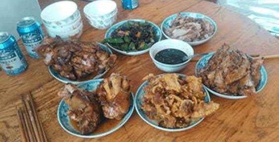 大伯今年76岁了,身体相当不好,坐着都上不来气,但是知道我们回来了,拄着棍子给我们做了一桌菜,炸了个带鱼!