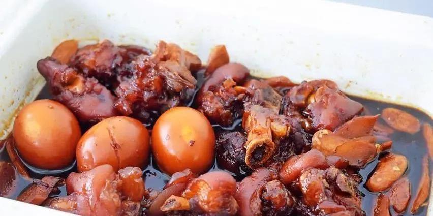 这道菜就叫猪脚姜,乍一看有点像红烧肉。
