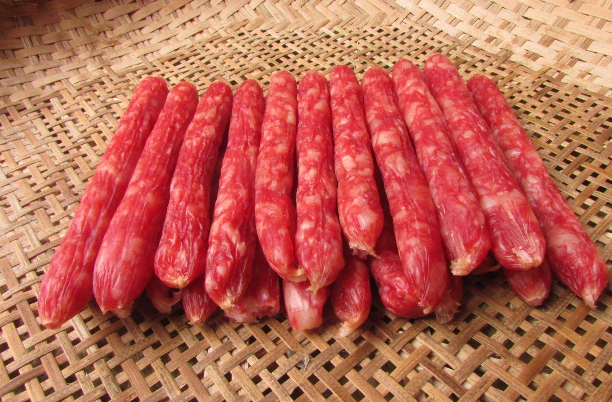 广式香肠的主要原料是猪的后腿肉,加入食盐、生抽、白糖、香料等各种调味品,经过一系列更加细致的处理,就完成啦。广式香肠看起来小小的,色泽明亮,光是看着,就很有食欲了,味道属于咸中带甜的感觉,在众多粤菜里,香肠也占据了一定的地位。
