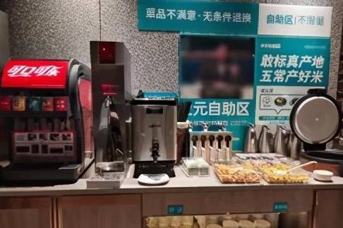 超值=价格实惠+分量足。什么是超值?小料台上,5种自助饮料(柠檬红茶、可乐、雪碧、芬达、豆浆)、小吃(爆米花、小饼干)、五常大米米饭、干碟蘸料,2元无限量自助。