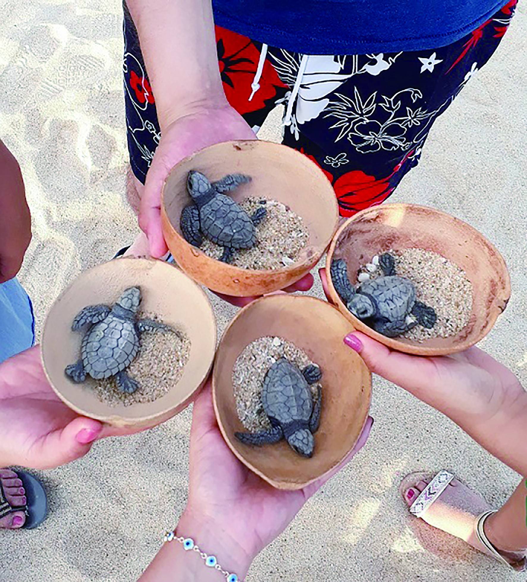 海龟放生是埃斯孔迪多港一项有趣又有意义的活动,由当地的海龟保护组织打造。蓬塔克罗拉达海滩是可放生海滩中的一个,沙滩上有保护组织圈起来的孵化地,工作人员将被海水冲刷散落在沙穴外的龟蛋拾起后放到保护地内重新孵化。每天落日余晖最美的时刻,将当天孵化出来的小海龟交由活动参加者放生。记者支付150比索后获得参与放生的资格。过程中,记者被告知不能用手触碰小海龟,凭借椰壳将它们放到沙滩上,同时要驱赶附近的海鸥,防止它们俯冲下来啄食。看着在翻滚的浪涛中勇敢奔向大海的小海龟们,使命感和自豪感油然而生。