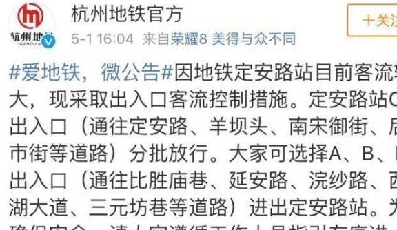 网友@lee_sens说,杭州地铁把人挤扁了,一定不要五一去景点,一定不要五一去西泠桥,一定不要在龙翔桥坐地铁。