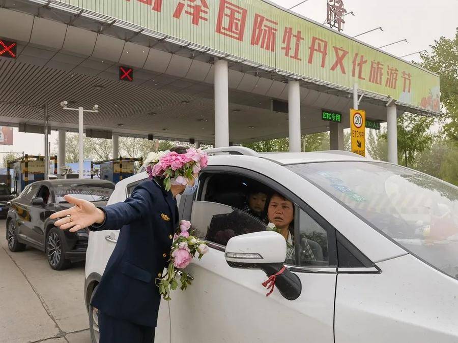 4月11日,由菏泽市委宣传部、山东高速菏泽发展有限公司联合主办的“花开盛世‘菏’你同行创享美好之路”牡丹主题宣传活动,在菏泽收费站举行。在第32届菏泽国际牡丹文化旅游节期间,为通过高速公路来菏赏花的游客营造更加温馨美好的出游氛围。