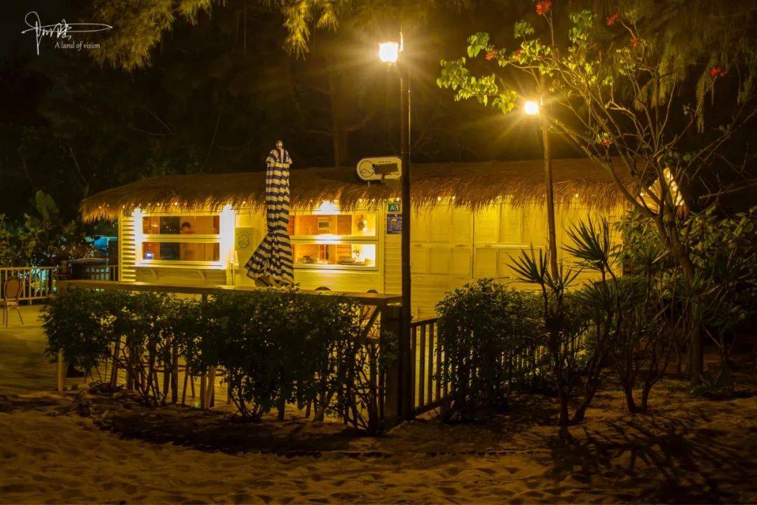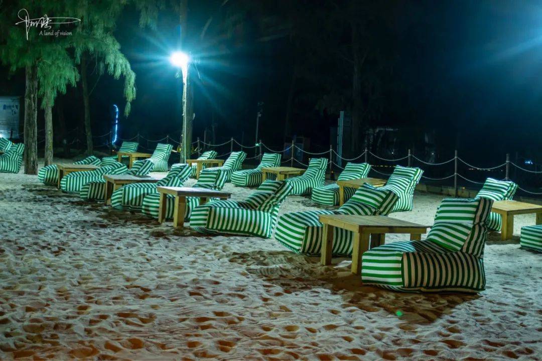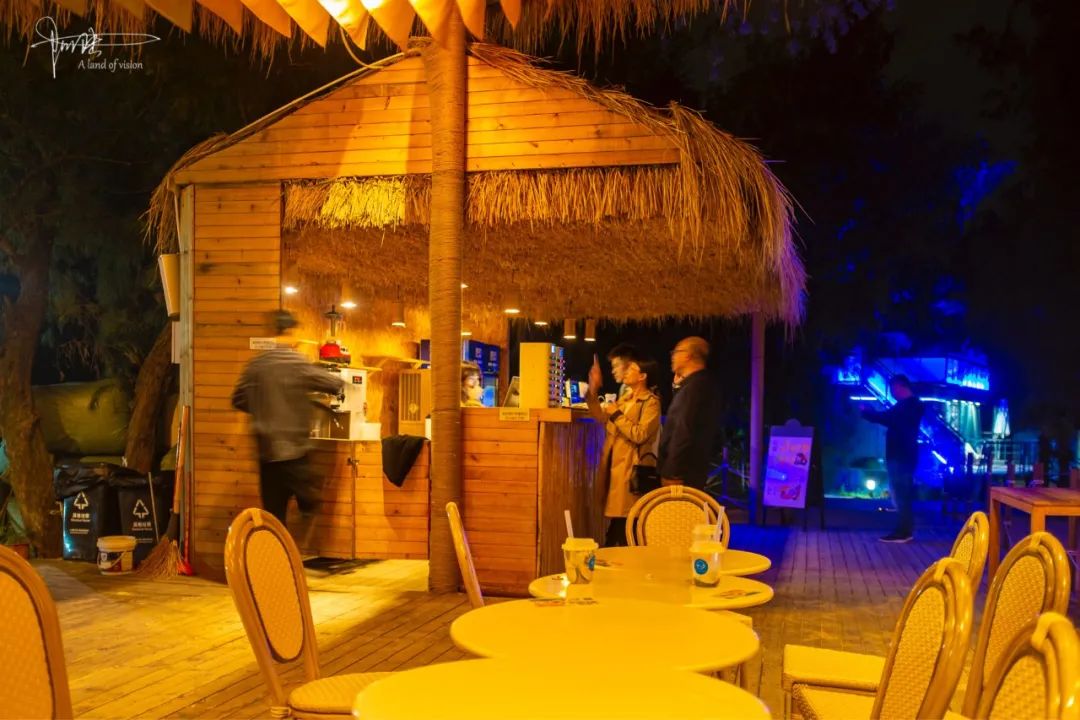 在还没涨潮的时候,这里和大海之间其实还隔着百米左右的平坦沙滩,等海风抵达,也已经变得十分温柔,如此环境下,跟三五好友一边聊天一边喝咖啡或者冰镇饮料,那叫一个惬意。