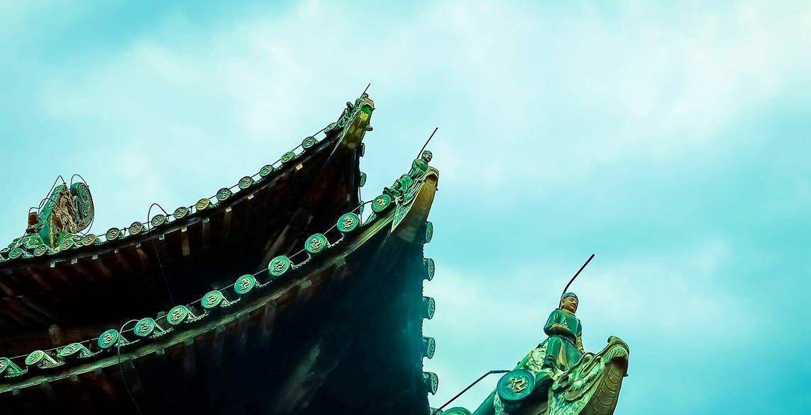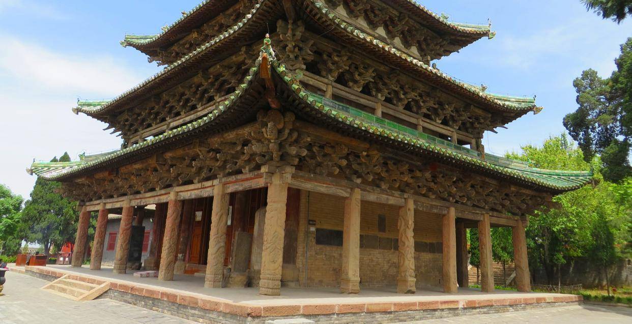 清殿(大罗三境殿)为歇山式单檐明代殿堂式建筑,其实它跟玉皇阁颇为相似,都有几十根石柱支撑,上雕着众多精美石刻,不过最有意思的还是三清殿(大罗三境殿)屋檐四角下的小木人,这四个小木人便是代表着庞涓、罗成、韩信、周瑜,在历史中,他们都是稍显心胸狭窄之人,由此被放置屋檐下,象征“上有重物压顶,下临无底绝境”,告诫世人要心胸开阔,做事光明磊落。
