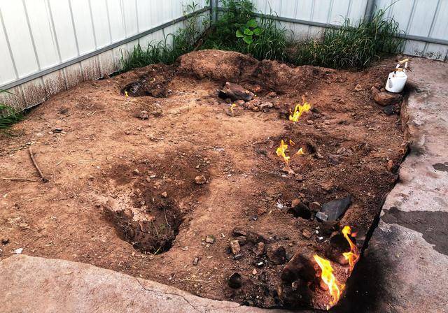只不过,在填上之前的矿井之后,依然会有少量的天然气从泥土里冒出来,只要挖出一些小口,就会有天然气,点上火,只要不是大雨,就不会灭了。所以,从那时候开始直到现在,60多年了,天然气废井就一直这样烧着,形成了现在的地火坑。