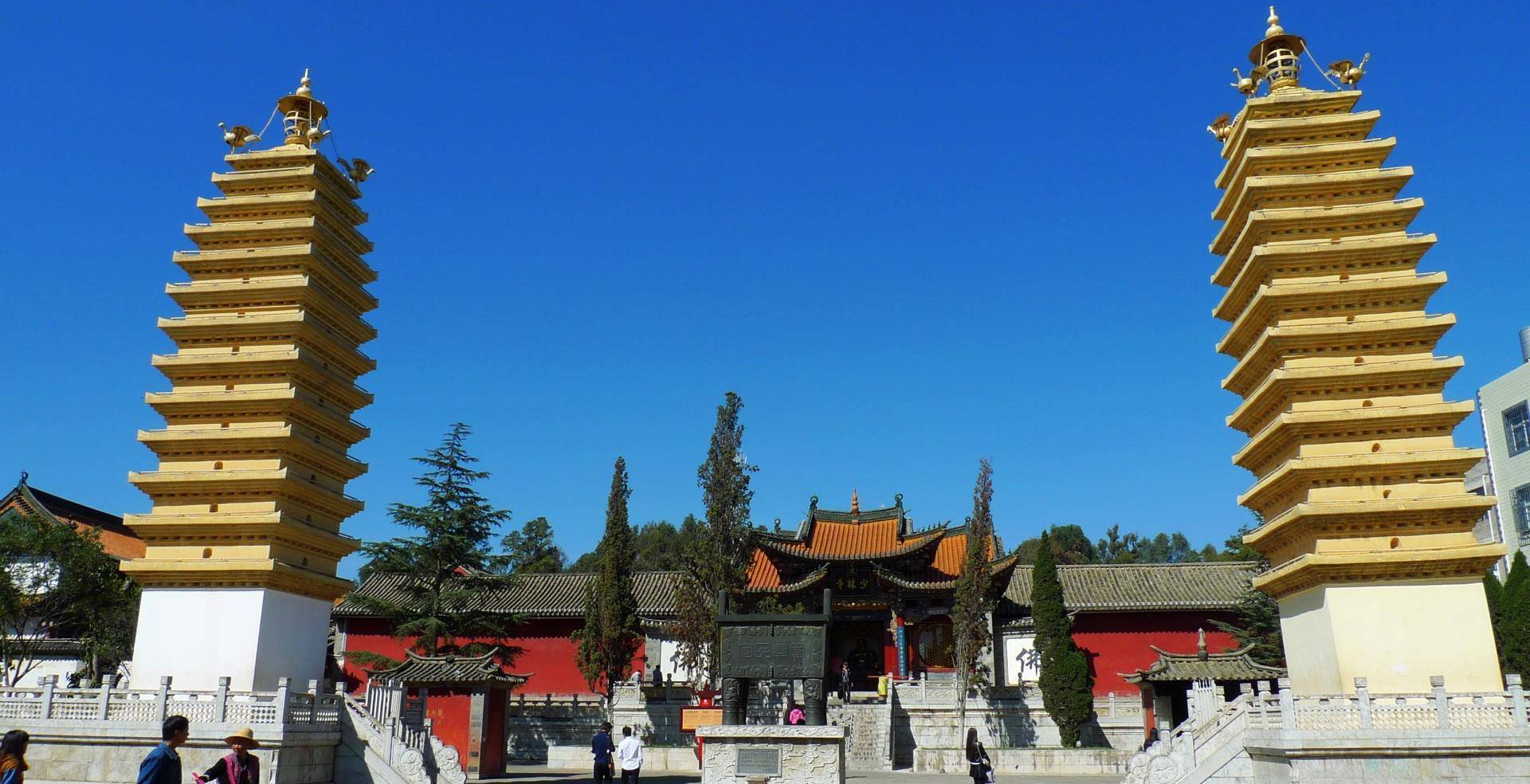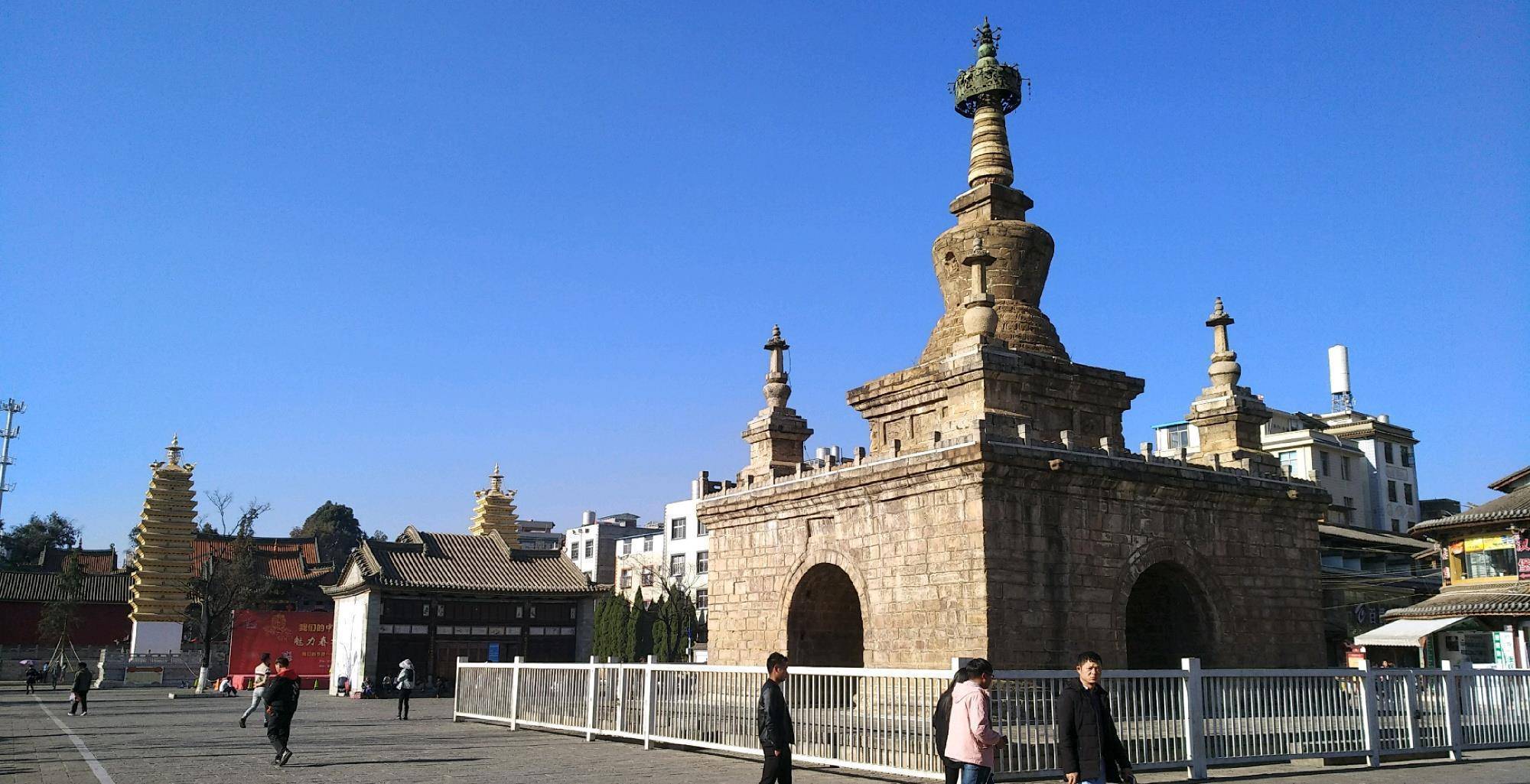 现在看到的西塔是后面重建的,有17.5米高,也是方形的台基,有5.5米长,在第一层到第十二层都有佛龛,顶部还有铜铸造的大鹏金翅鸟,据说是用于镇压水患。妙湛寺的金刚塔与双塔呈三角形屹立在昆明官渡,它有点类似于呼和浩特的金刚座舍利宝塔、北京的真觉寺金刚宝座,但是其不同之处也许就在于它出现在西南,不得不让人感叹一声宗教传播的力量何其之远。