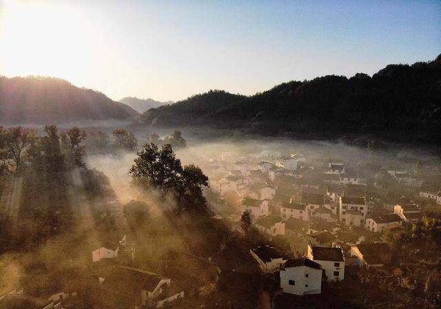 在太阳升起来之后,七点多以后,情况发生了转变。当村里的人家开始做起了早饭,炊烟慢慢升起的时候,村子里开始变得烟雾缭绕,慢慢如同一个人间仙境。