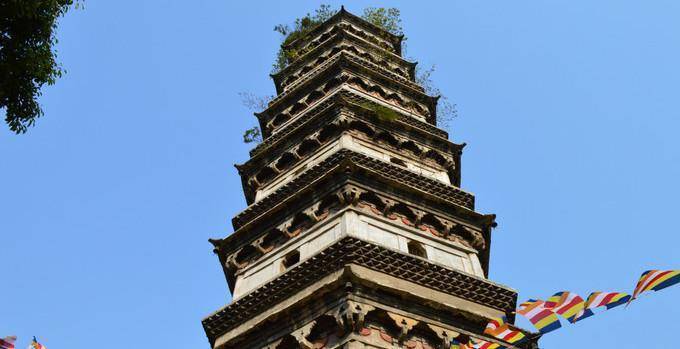能仁寺最值得一提的便是寺院内的大胜宝塔,最早建造于唐朝年间,在明朝、清朝先后重新建造。整个宝塔有43米高,分为七层,一共有六面。宝塔的塔门面向西方,从第二层开始,每一层每一面都有一扇小门,其中只有三扇门是可以打开的。在宝塔的内部还有砖石堆砌的阶梯,沿着阶梯可以盘旋往上,这种“三实三虚”的建筑模式,在中国的古塔中是独一无二的,被列入了国家级文物保护单位。如果登上宝塔的最高层,还可以把整个九江的景色尽数观赏。
