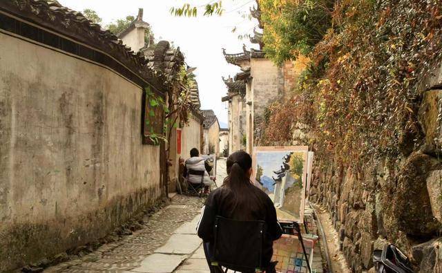 我最喜欢屏山村的,是这里比宏村更加安静。没有太多游客的喧嚣,你可以在这里住上好多天。在入冬之际,除了村民和写生的学生,这里没有太多外来游客。走在屏山村的巷子里,看着一栋栋古朴的徽派建筑,你仿若穿越了时空,来到了明清时期。