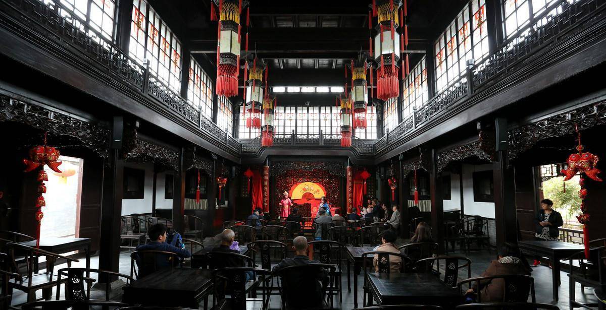 甬路前面便是大戏楼、接客厅等一众建筑,大戏楼是华北民宅中最大的戏楼,里面非常的豪华,楠木做的格扇,可供近200人看戏的观众厅,精美的砖雕木刻比比皆是,不过戏楼上面的舞台却是相对比较小,据说是因为石元仕不怎么喜欢看武戏,只喜欢看文戏,特意这么设计的,在石家鼎盛时期,当时被尊为京剧界鼻祖的谭鑫培,被慈禧太后特招入宫的孙菊仙等京剧大师,都曾经来此表演过。