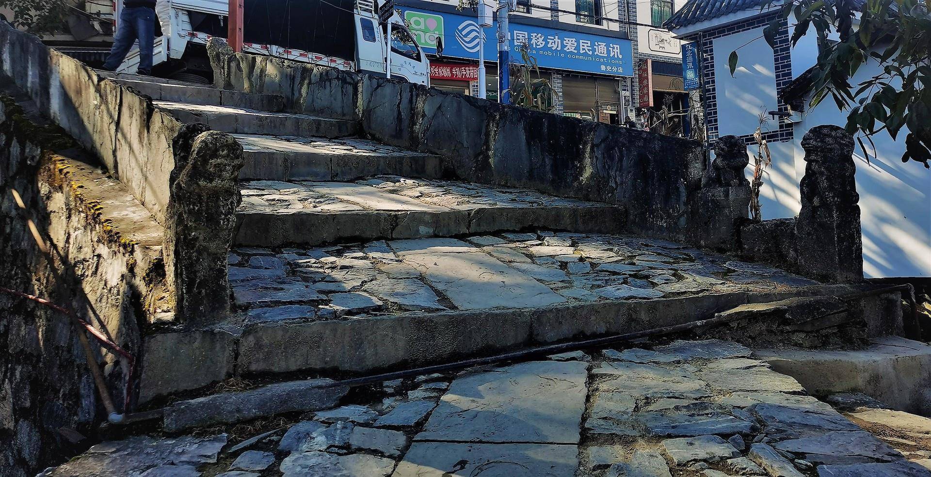镇中的大街小巷也是纵横交错,各个街道都具有一个共同的特点,道路几乎都是用鹅卵石和石板铺成,青石板铺就在街道中间,鹅卵石铺在街道两边。最有特色的要数楼梯,半尺的街道青石板上,有凹陷的马蹄印迹,这些印迹也展现了当年鲁史的繁华。
