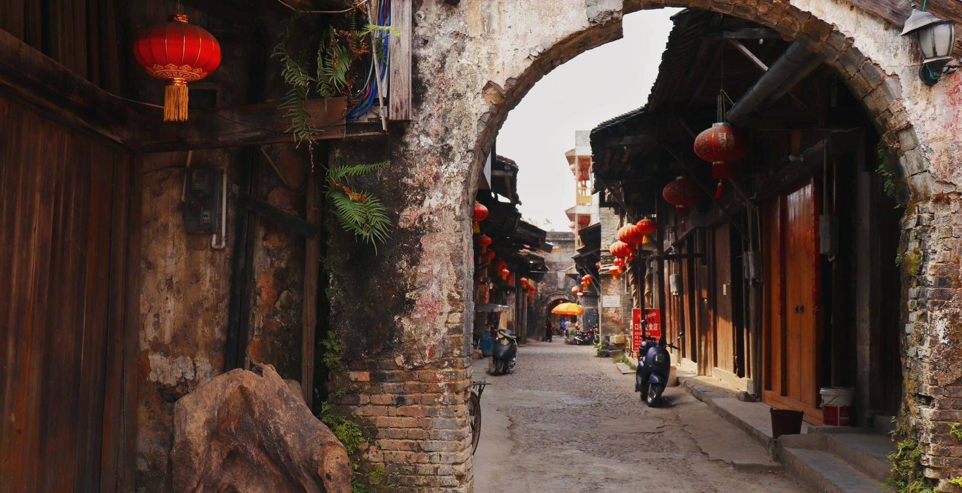 行走在古镇的石板长街,从那满城墙的青苔,旧时候朴拙的屋顶与走廊,铁匠敲击锻铁声中可看出,听出古镇旧时的繁华。近入古巷,一眼望去的都是石板路,如果在这时下起小雨,这样的地面便会犹如镜面一般。古巷的房屋大多为明清建筑的砖木结构,每一栋房屋都有着数百年历史,有部分房子还没有修理好,因时间流逝而随处可见的沧桑感。