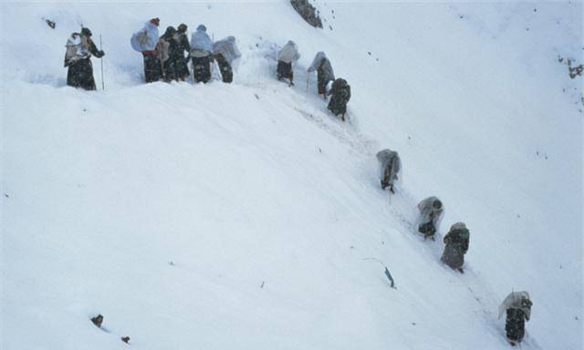 按照登山队的计划,他们先登上雪山3千米的高度,然后在这里找一个避风拐角搭好红色的帐篷作为临时休息大本营用,同时留下几名队员看守。此后每往上走个1千米他们就会如法炮制,这样才能最大限度保证登山队的安全。