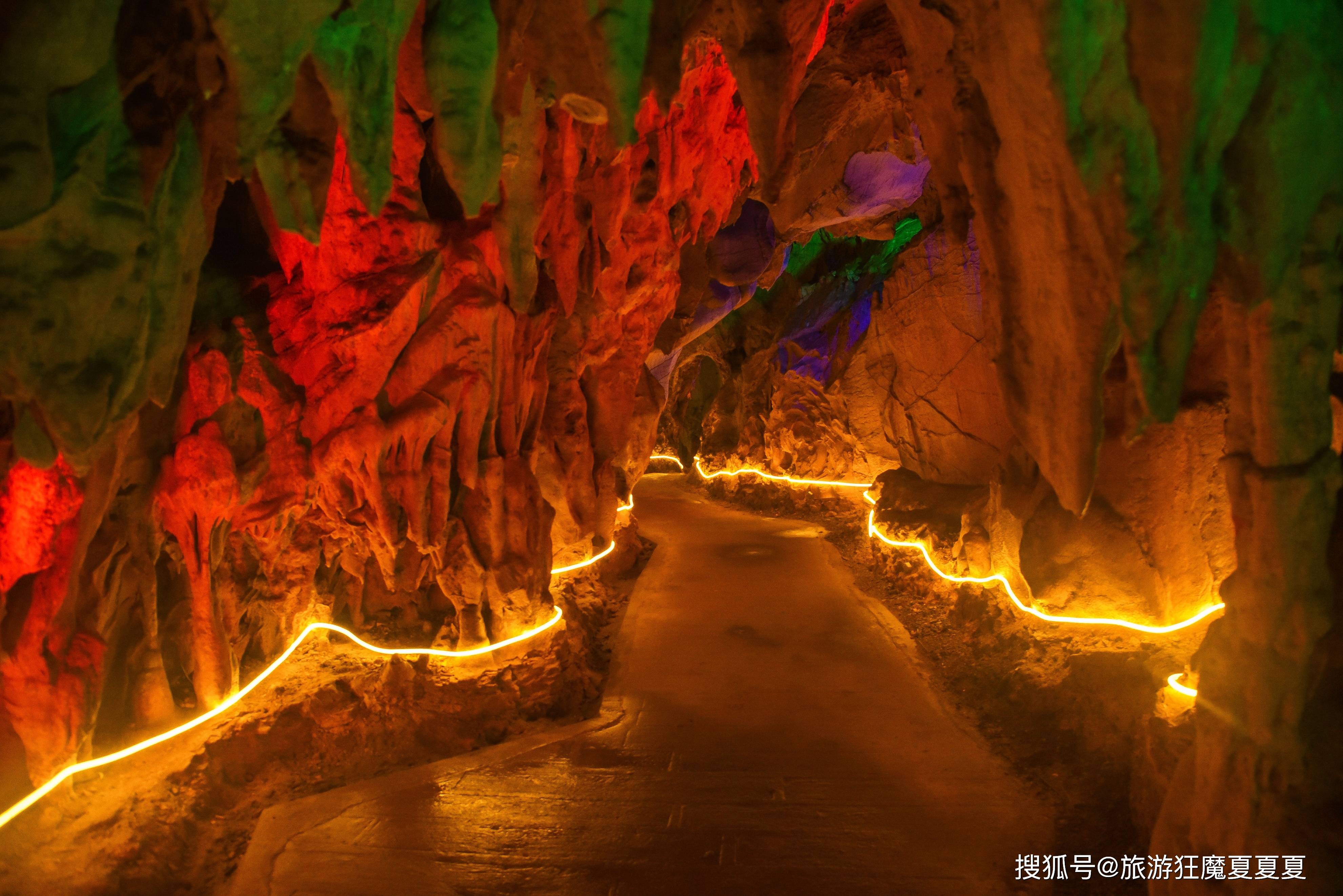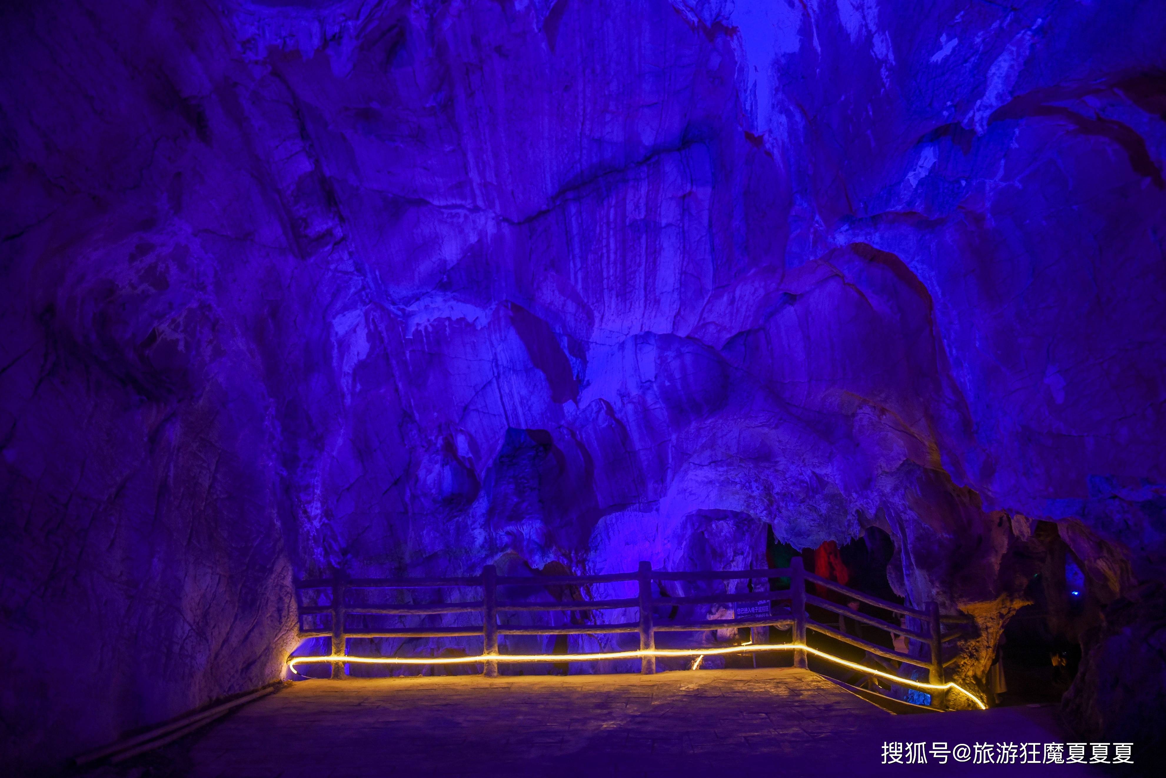 从洞口进入后,整个参观路线长约三公里,分成了上下两层共计四个大厅,可以先乘坐观光电梯到达顶层之后,在沿着台阶一路向下参观,比起一般溶洞景区又上又下的参观路线来说轻松不少,不仅如此,早在约600万年前的晚中生代就开始形成的钟乳石琳琅满目,各种钟乳石、石笋、石柱等地质景观齐全,堪称溶洞版的地质大观园。