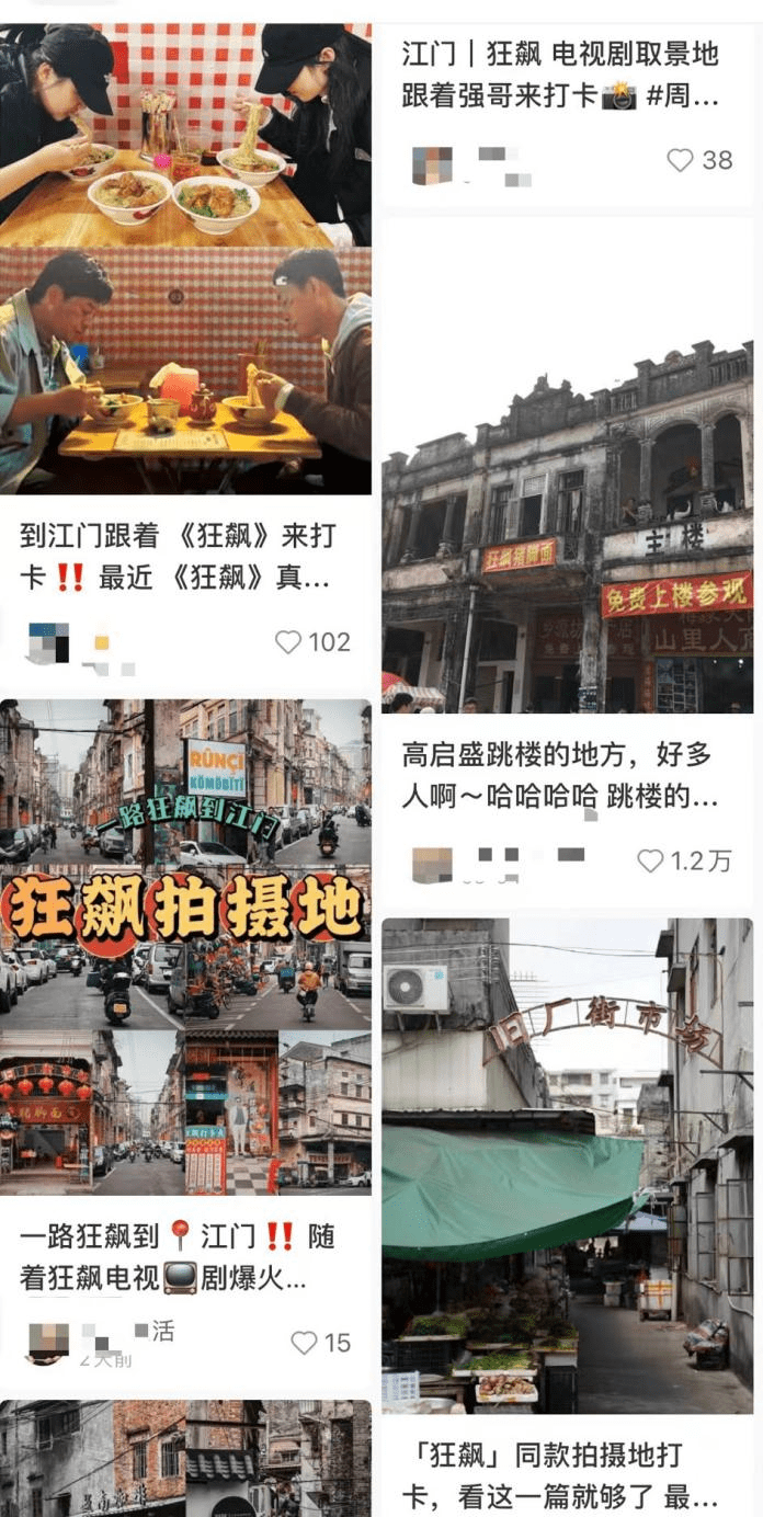 以江门为例,因《狂飙》走红后,富有南洋风情的骑楼群、与剧集联动的猪脚面、底蕴深厚的广府文化,让江门一跃成为2023年第一个网红城市。今年3月,江门的旅游搜索访问量比去年同期增长174%。整体旅游预订量同比增长93%,环比1月同期增长15%。
