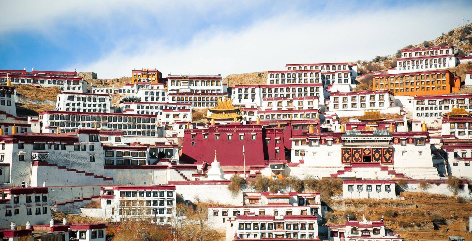 但甘丹寺是目前最早的一座寺庙,同时也是三大寺之一,位于拉萨达孜县,在海拔3800米的旺波日山和贡巴山的山坳及山顶处。寺庙依山而建,规模宏大、气势雄伟,红墙金顶,背衬蓝天白云,似被云海托起般,寺庙内的殿堂大小错落,星罗棋布。