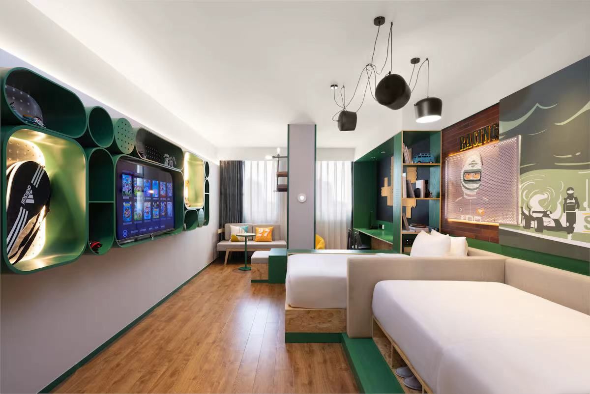 徜徉其中,不仅可以感受到年轻摩登复古的潮流设计美学冲撞,更能体验一种属于自由派新知青年的超酷旅程。区别于一般的商旅型中端酒店,陶瑞酒店将大学校园文化以独特的现代感工业风设计呈现,将酒店客房、公寓和共享空间完美融合,并辅以睿智有趣的装置艺术,给新晋职场精英、创业者、高校师生提供极具启发性的居住、交流和共享空间。