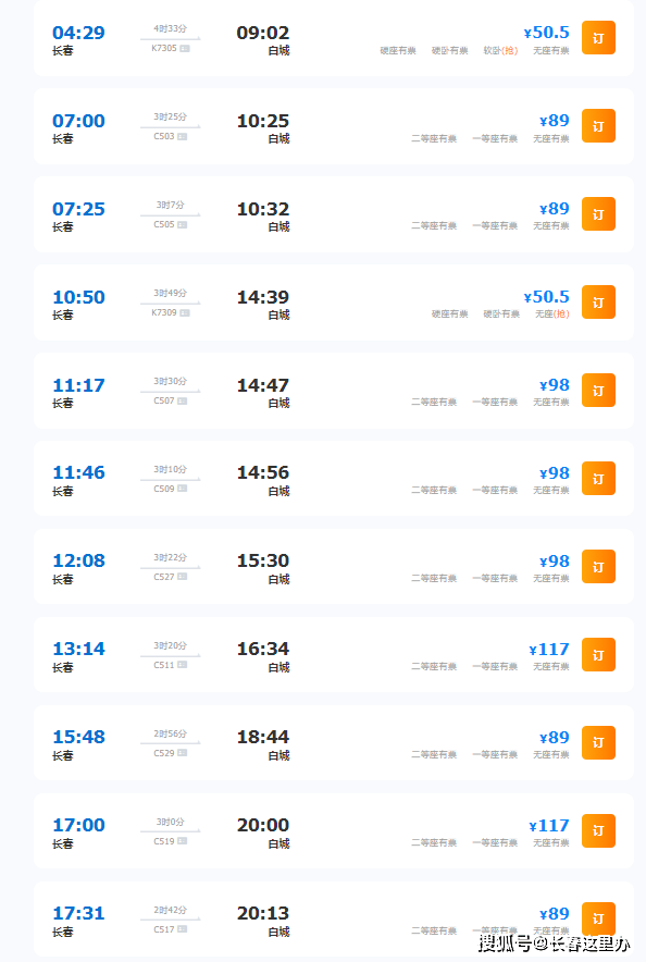1.长春至白城C505次列车长春站运行时刻由7:25始发调整为7:20始发。