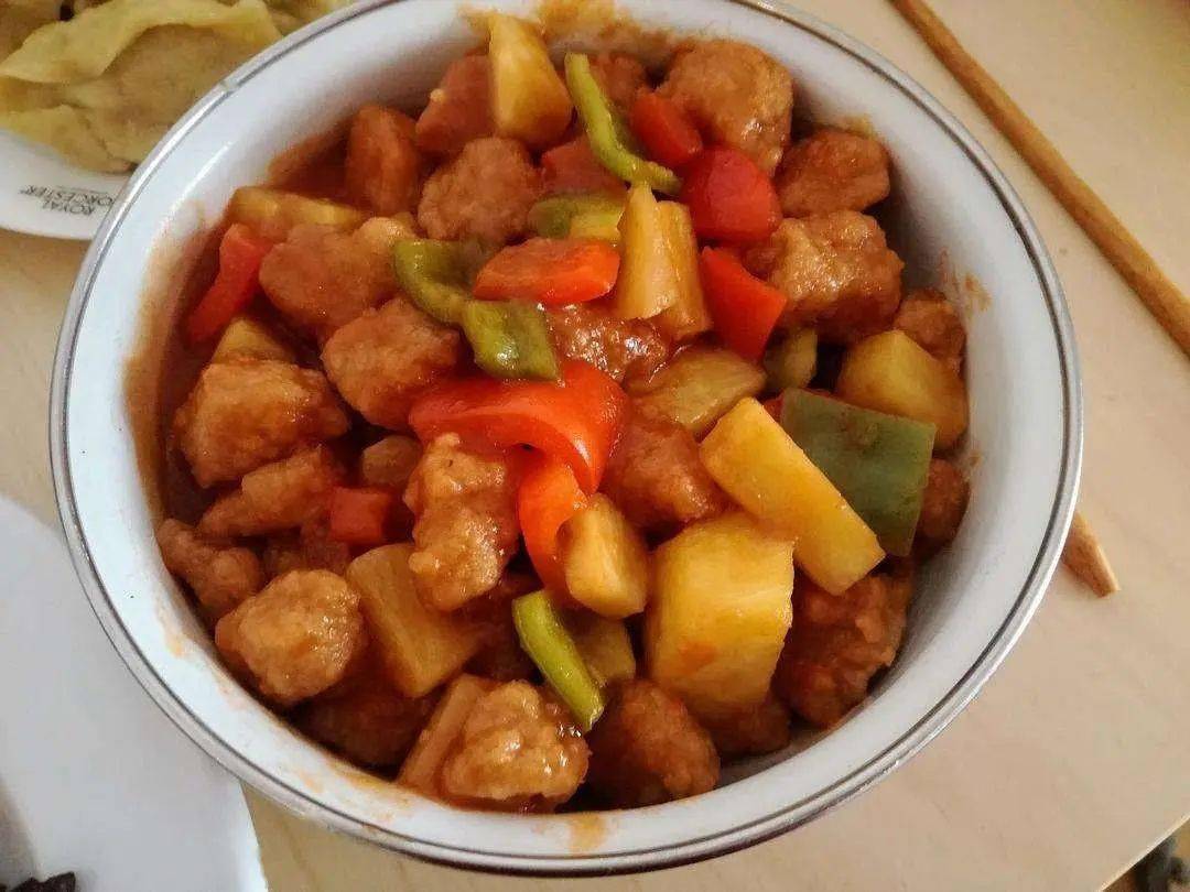 下面说的这道菜可是笔者的最爱!是谁这样聪明想到将肉和菠萝放在一起炒的?真是个烹饪界的人才!