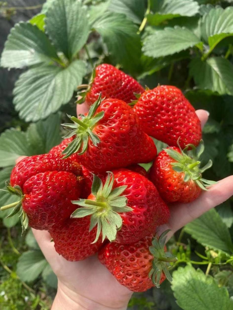 仲春时节,暖风拂面。在利辛县汝集镇街南村成泰家庭农场草莓采摘园,大棚里一片热闹景象,翠绿的草莓叶子间点缀着鲜红的果实,草莓的香甜味道扑鼻而来。许多游客趁着周末的闲暇时光,呼朋唤友、携家带口来到这里,体验草莓采摘的乐趣。