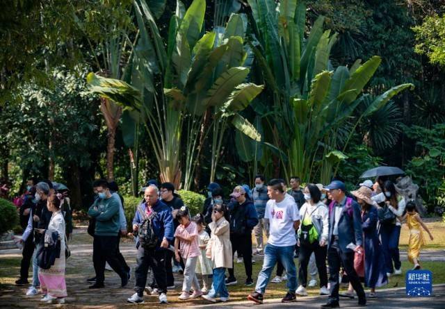 游客在位于云南省西双版纳州勐腊县勐仑镇的中国科学院西双版纳热带植物园内游览(2023年2月12日摄)。新华社记者 陈欣波 摄