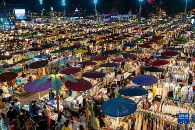 这是云南省西双版纳景洪市告庄西双景星光夜市(2023年2月12日摄)。新华社记者 陈欣波 摄