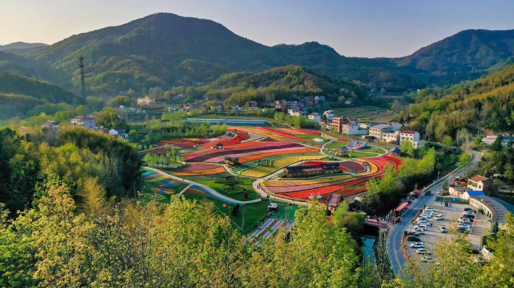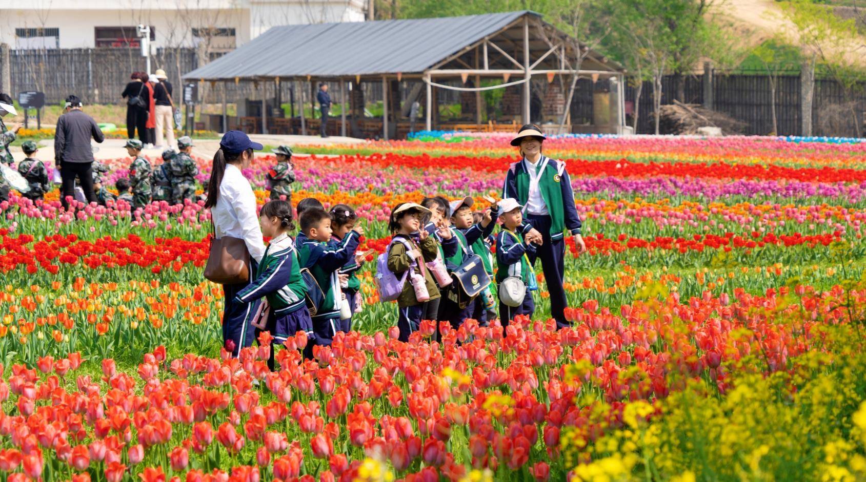踏春赏花郁金香。四月的西九华山草木繁茂、花开满园,近百万株盛开的郁金香,一片繁花似锦、春意盎然的景色让游人大饱眼福。