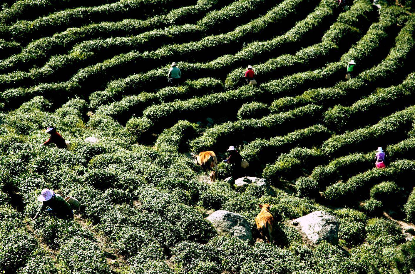 采茶品茗唇留香。固始西九华山地处大别山腹地,群山之中的万亩茶园历经寒冷的西北风和南来的湿润空气交互抚育,所产的茶叶属信阳毛尖不可多得的上乘佳品。