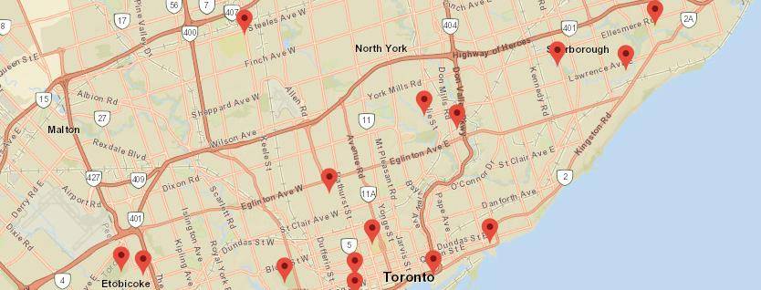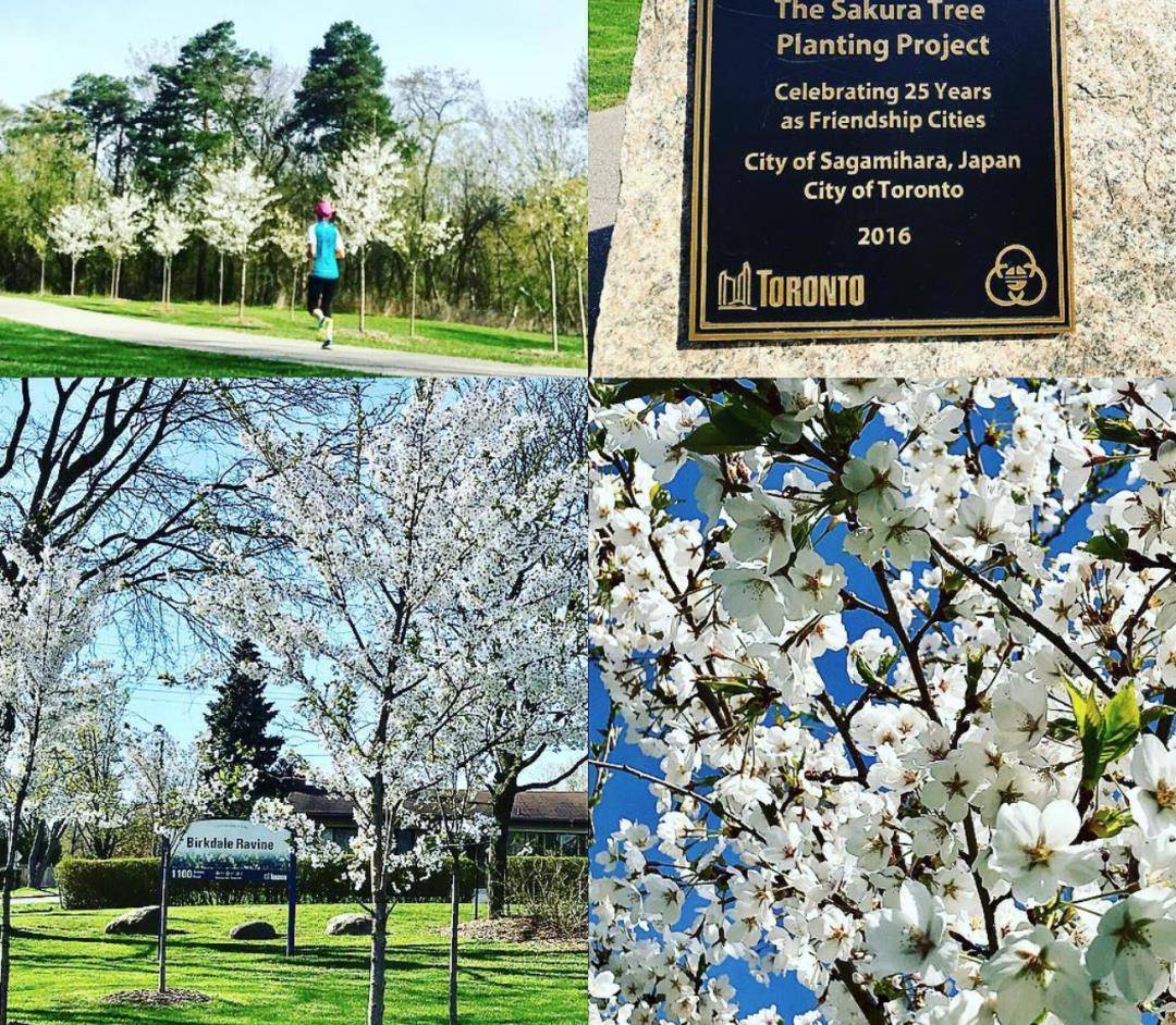 在Pomeroy Street 和 Lyon Heights Road 入口处。多伦多在日本的姐妹市于2015、2016年捐了45棵樱花树。