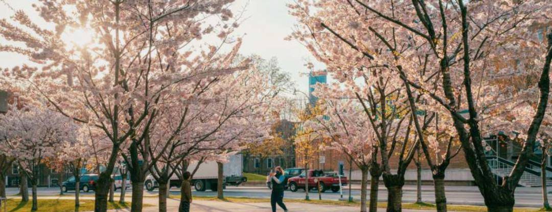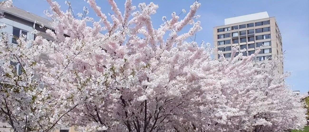 约有70棵樱花树位于Huron st和Harbord St旁边的人行道上~在花开之际也是大小网红必去的打卡之地,而且和周围的教学楼图书馆相互映衬,别有一番格调。