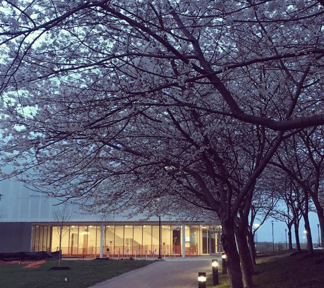多伦多大学士嘉堡分校的Humanaties Wing前面有小小的樱花步道,大约有50棵樱花树,每年的拍照也是美美的!