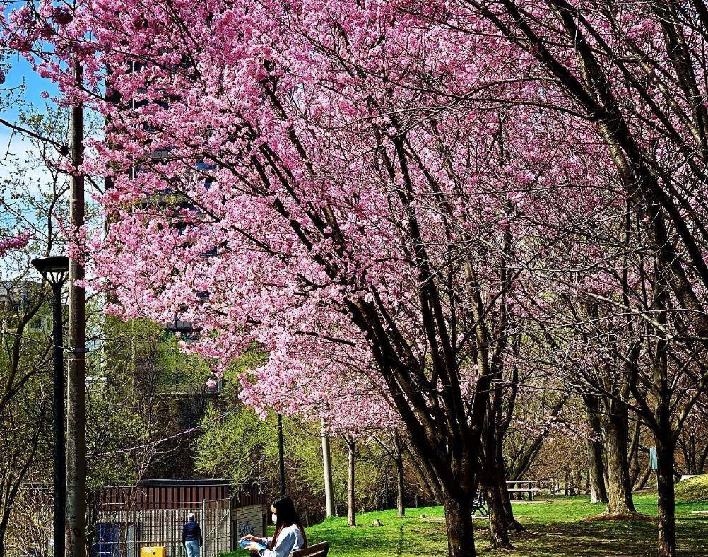约有70棵樱花树~拍照最佳景点位于公园的西北角,靠近Queen St W 和Gore Vale Ave的地方。这个公园每年也是非常火的,去年小编开车绕了一圈就回家了......