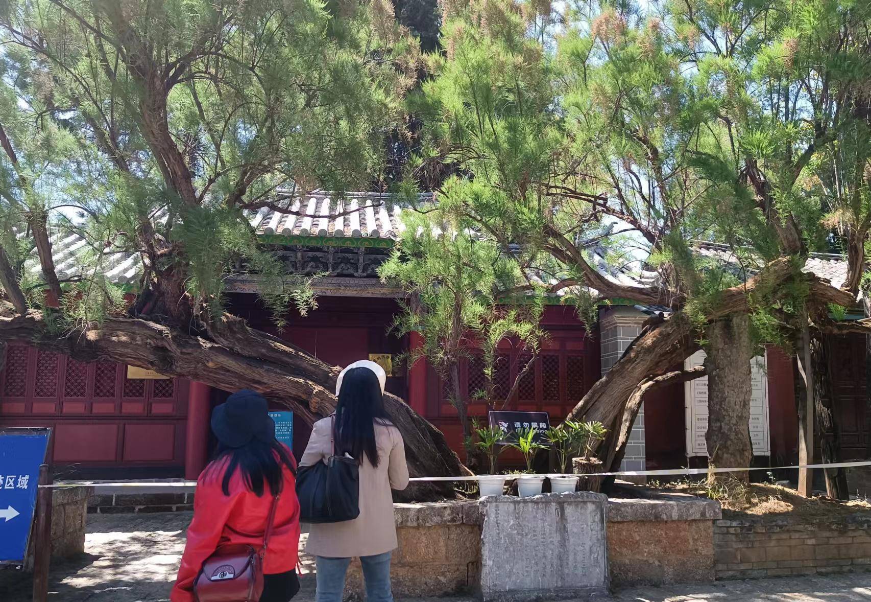 院子里,有一棵几百年的柽柳,树干被雷电劈开,两片树干往两边分开,仿佛被神明的铁拳砸成弓形。几百年来,这棵柽柳依然倔强地生长着;和院子里的众多古木一样,苍凉而肃穆。安静地站在院子里,古木叶片的“窸窣”声,仿佛在讲述着纳西族遥远的历史……