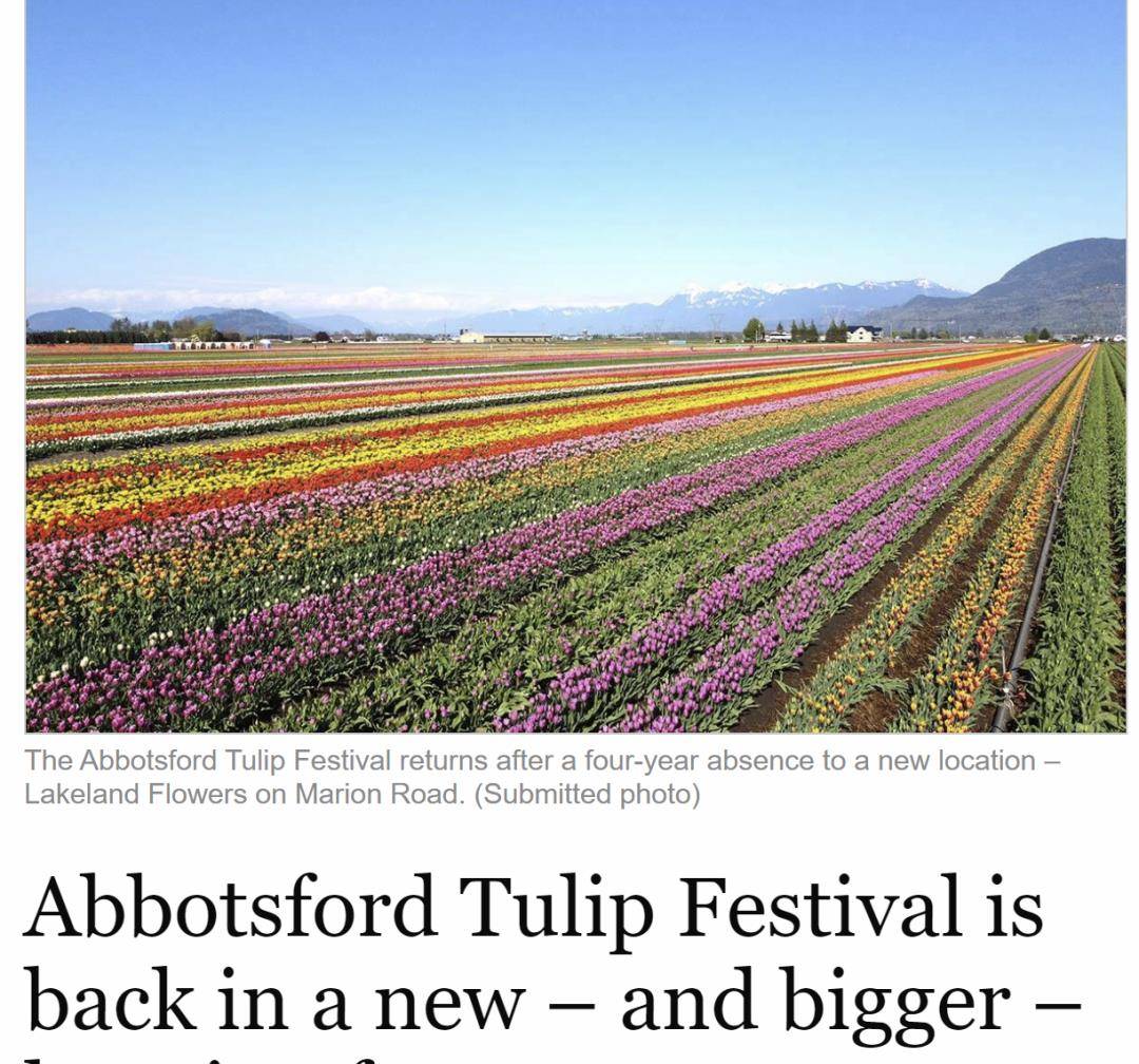 2021年,因为经济不确定性和疫情的持续,当时的花田拥有者Alexis Szarek将阿伯茨福的地块出售,并将阿伯茨福郁金香节搬到了内陆的阿姆斯特朗。