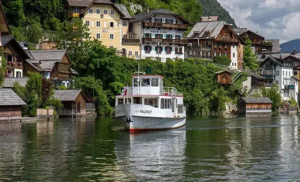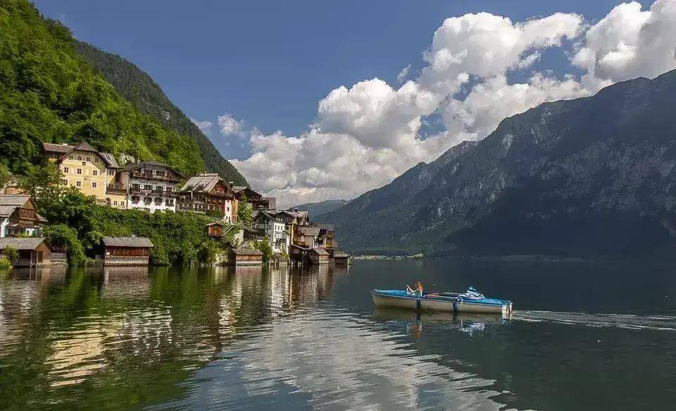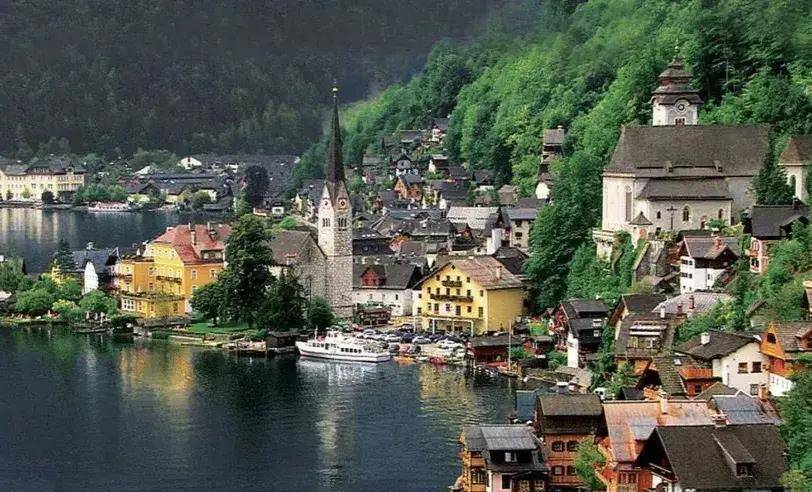 住在临湖的庭院旅馆,推窗见湖。遥望湖上泛起的青烟,仿佛置身在人间仙境。向远处望去,碧绿的群山层层叠叠,山上翠绿欲滴,山间低云缠绕;蓝宝石般的哈尔斯塔特湖倒映着群山,小舟在银波闪烁的湖面上荡漾。此时,哈尔斯塔特多像一位风姿绰约的美女,沁人心脾,让人陶醉……