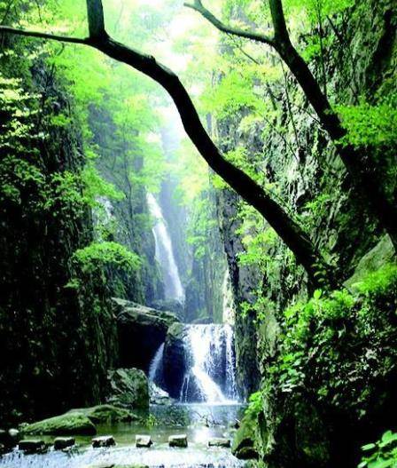 著名的景点当数“三潭叠韵一线天”。这里峡谷幽深,峭壁撑云,左右如削,留得青天一线,三道瀑布飞泻而下,眼望如银河落天,耳听似雷霆万钧,神奇绝妙,令人称颂。