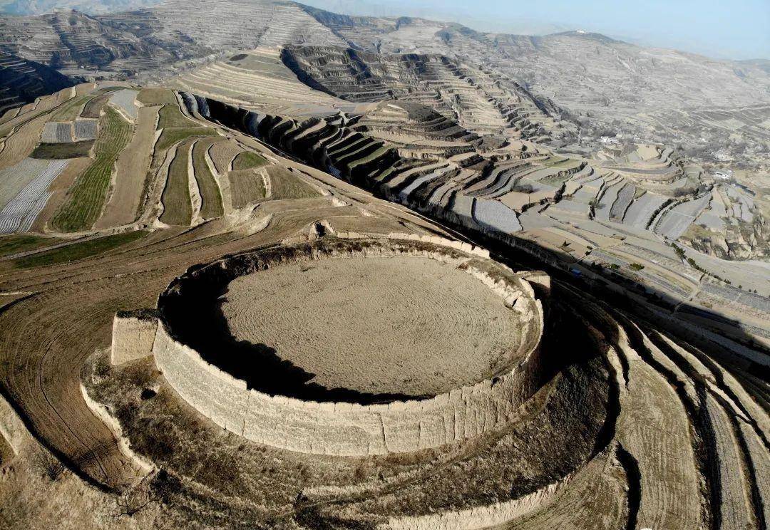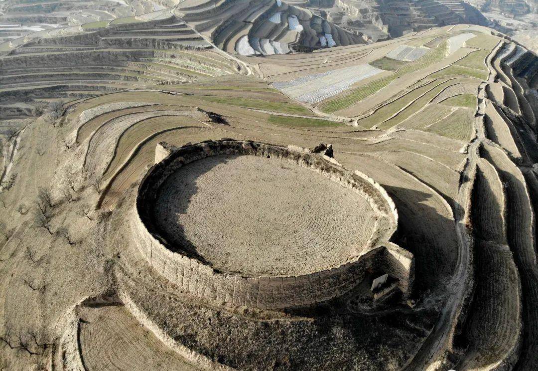 :只见一座圆形城堡矗立在杨家湾村山头,