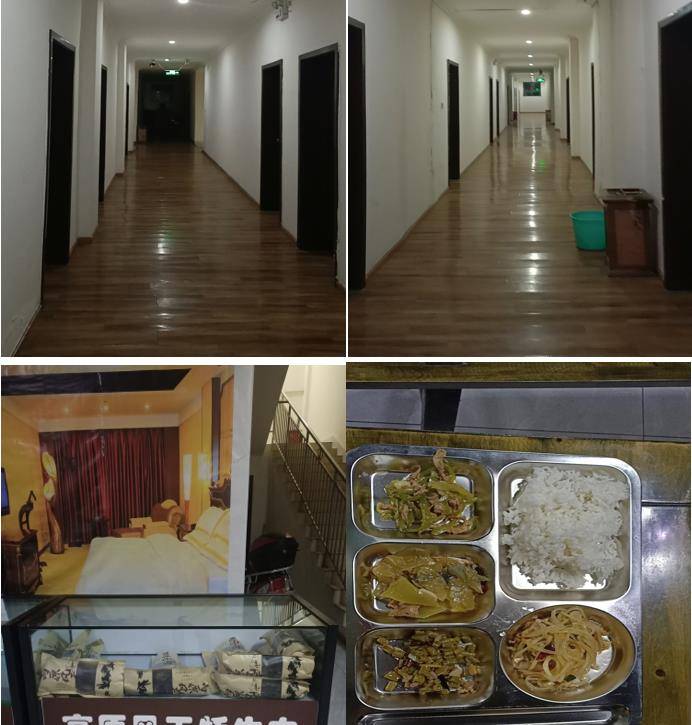 放下行李,赶紧下楼,去一楼饭厅,各自买饭菜吃,30元/份,快餐,菜品差,份量少,不热乎,这么晚了,饭菜早就冰凉了。不好吃,价贵,没办法,将就吃点充饥呗。出门在外回高原,途中讲究不了那么多,能有口吃的就不错了。如果挑食,只有饿肚皮的份儿,多少吃点,好歹下半夜不坐车不担心自己晕车呕吐,明早5点又要上车赶路呢。
