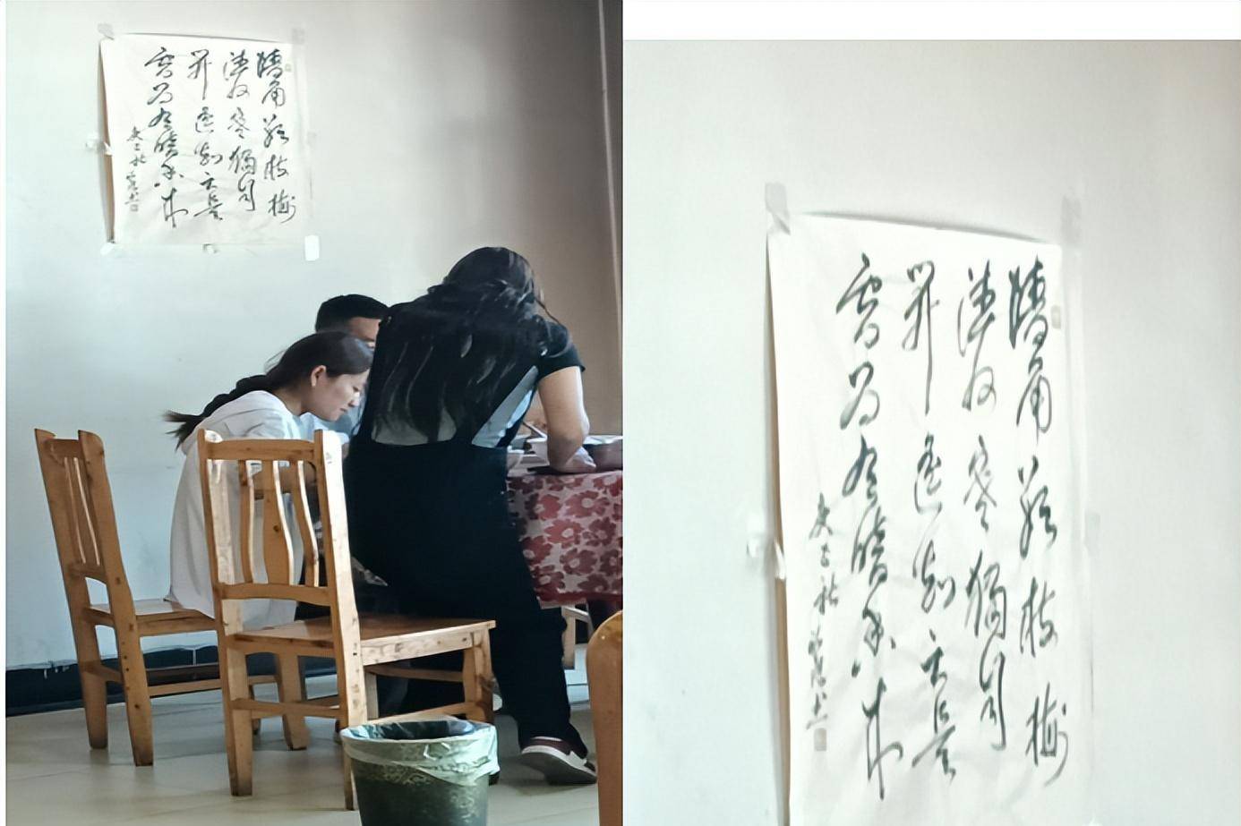 中午,快出川至江达之前,车停下,司机让大家在一藏家食店简单吃饭,顺便稍事休整。我找老板娘店里电源,先给小冰箱充上电,然后要了一碗红烧牛肉土豆,太油,米饭很硬,饭菜不好吃,将就吃,总比没有吃的好。食店墙上,一幅写梅花的字,引起了我的注意:墙角数枝梅,凌寒独自开。遥知不是雪,为有暗香来。这幅字为喜欢诗词字的我提了神。快速吃饭后,又匆匆上车赶路。