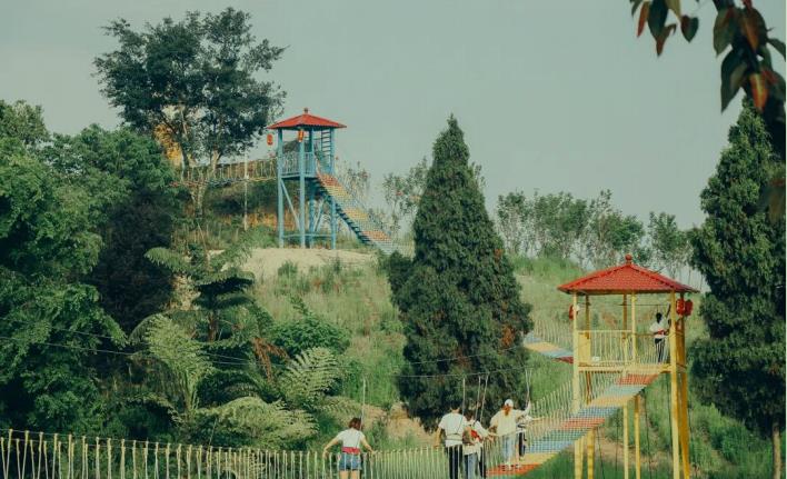 空中漫步位于四季花海上方,全长约900米,行走于高空之上,步步惊心,充满刺激,360度美景尽揽眼底,是大草原必打卡游玩项目。