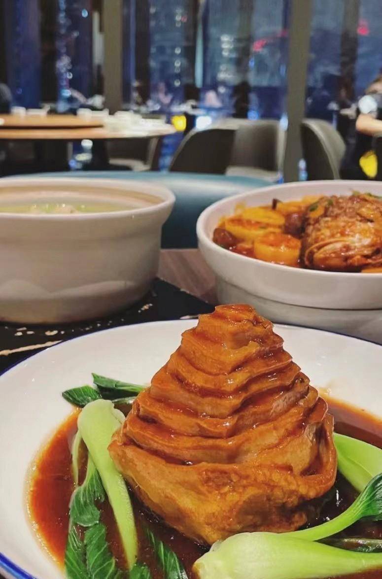 这道菜考验的不仅仅是口感,更是刀工。切成薄片的五花肉堆砌成一座小小的宝塔,宝塔中间放上梅干菜,五花肉吸入了梅干菜的甜味,肥而不腻。