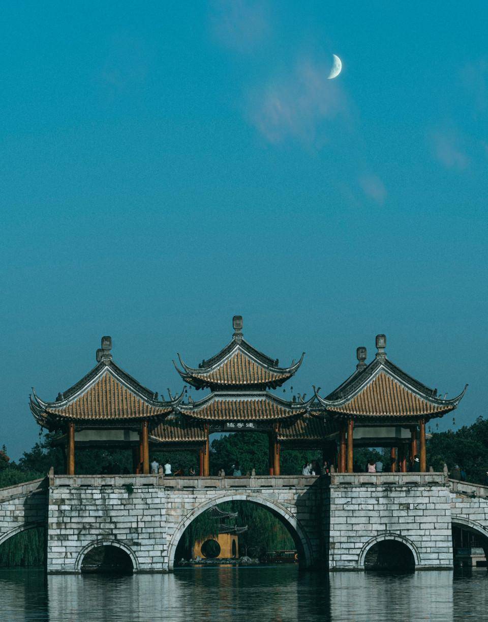 对了,瘦西湖还是87版《红楼梦》的取景地,如果想赏月可以去五亭桥,满月之夜,十五个桥洞中每个都含着一个月亮;想看长虹卧波的美景,就去二十四桥,一步一景,皆入眼帘。