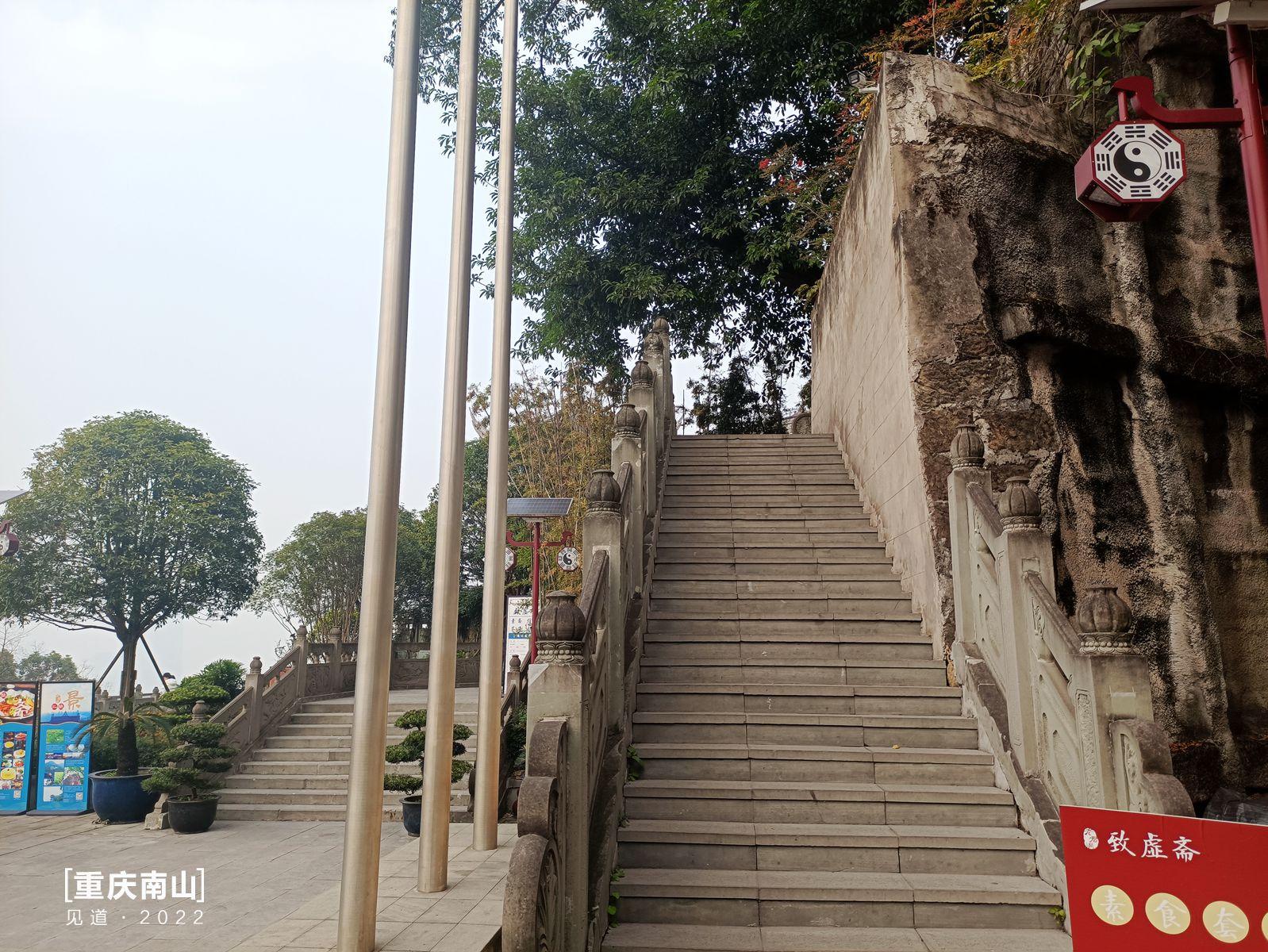 图中最高处的玉皇楼,可俯瞰渝中半岛,观景视野非常好。从三清殿两侧分别有陡峭的台阶步道可以上去。