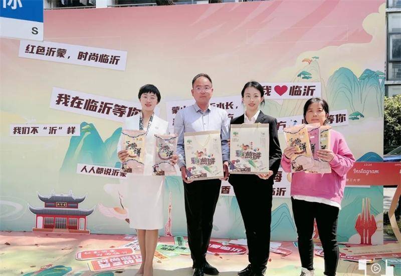 4月9日,“红色沂蒙·时尚临沂——星火传承高校行”活动走进上海理工大学。(室内)推介会上,蒙山彩蒙景区管委会市场开发科科长刘瑞艳就临沂文旅精品旅游线路和沂南文旅特色资源进行推介宣传,外场活动以沉浸式体验和趣味互动为主,沂南县七彩煎饼、马泉樱桃汁、景泰蓝非遗挂件等沂南好品广受上海高校师生好评,现场气氛十分热烈。