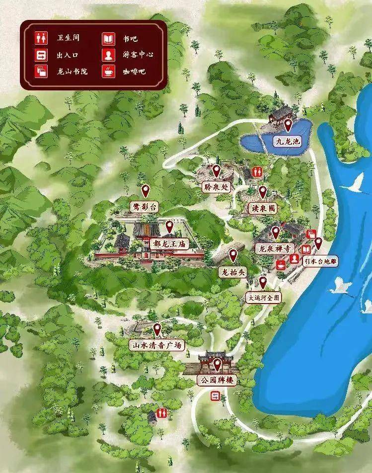 为了让大家更全面的了解大运河源头的故事,公园还贴心地为大家规划好了路线图,感兴趣的朋友可以通过“大运河源头遗址公园”小程序找到路线、免费听电子讲解。每处景点都有自己的历史和故事,下面我们就来挨个了解一下~